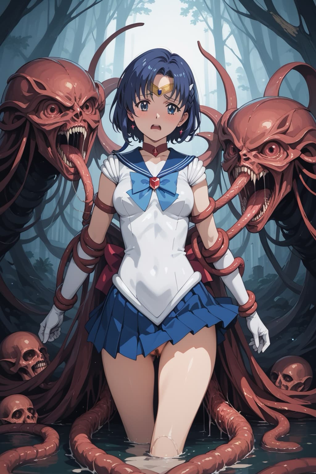 Ami, once a beautiful Sailor Soldier who fought evil as the guardian of Mercury, was now a 22-year-old college student. At that very moment, incidents were occurring where mysterious monsters were attacking young women one after another. Learning that the revived Dark Kingdom was pulling the strings behind these attacks, Ami once again donned her Sailor uniform and headed to the scene. However, the source of this information was none other than the Dark Kingdom itself. Yes, this evil organization, harboring a grudge against the Sailor Soldiers, had sent a sex beast, starved for female flesh, to trap Ami. Instantly captured, Ami…