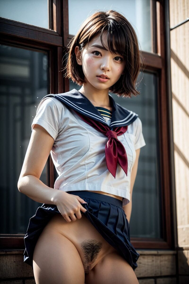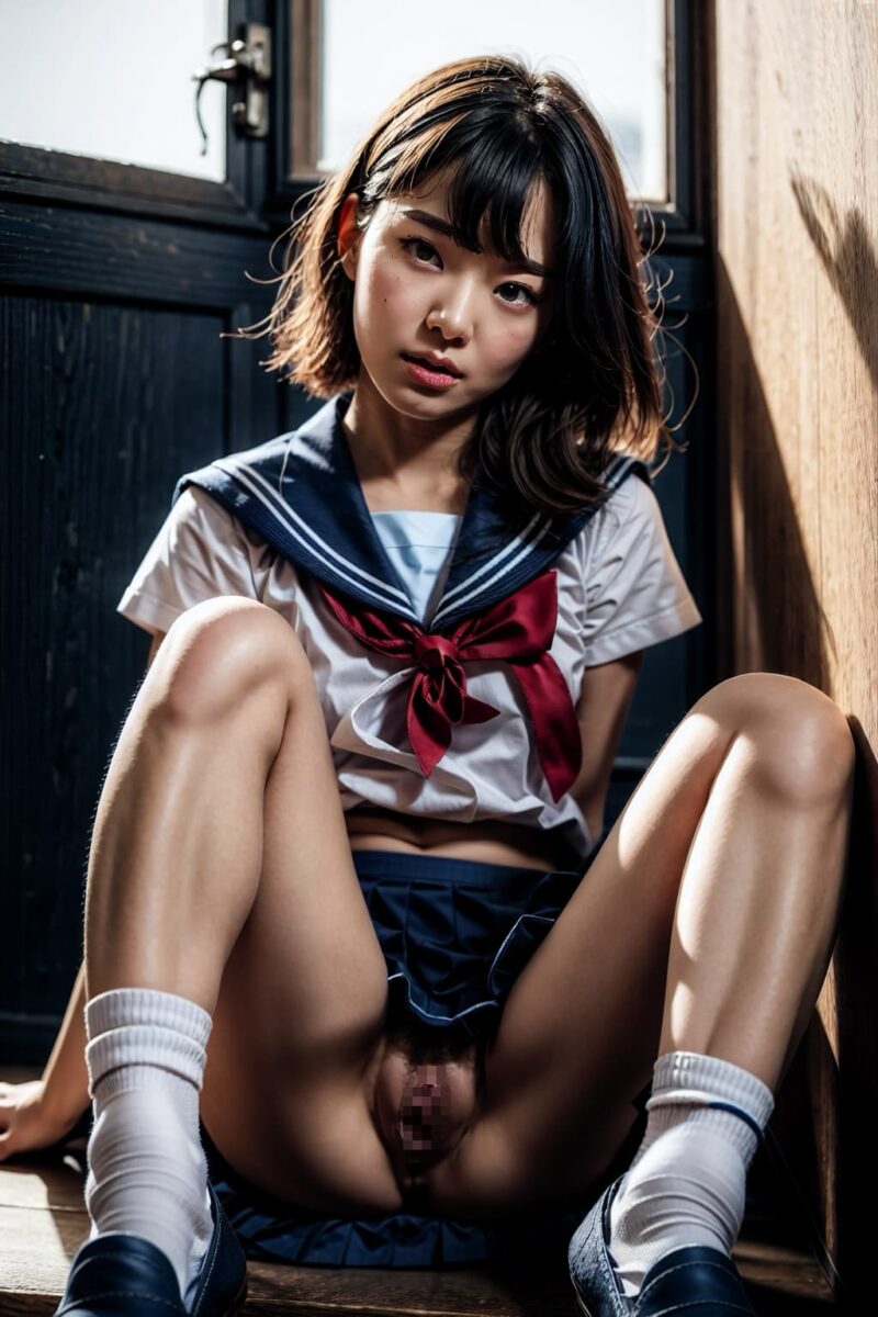 膣口から精液を垂らす制服美少女.俺の大好物の図柄だ.そんな痴態を撮影するために俺は次々とシャッターを切る.
